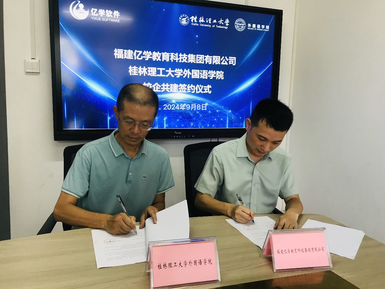 为深入推进校企合作,进一步加强实训平台构建以及共同推进产学合作协同育人项目,2023年9月8日上午,我院与福建亿学教育科技集团举行了校企合作共建签约暨授牌仪式。出席本次签约仪式的人员主要有亿学集团副总经理柳小刚、区域经理苏炜杜、外国语学院院长唐渠、副院长李蓉、院长助理曾文华以及英语和日语教研室部分老师。