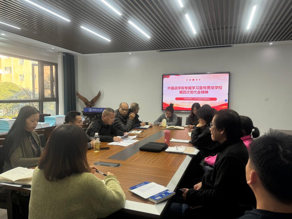 12月9日下午,学院在雁山校区04204会议室召开专题会议,深入学习宣传贯彻学校第四次党代会精神。学院党委委员、各支部书记参加会议,会议由学院党委书记谢济光主持。