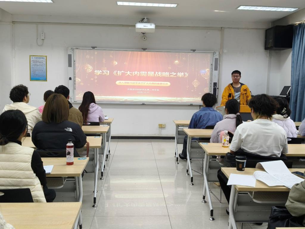 2025年12月17日,外国语学院研究生第二党支部举办了以“扩大内需是战略之举”为主题的党日活动,由党支部副书记叶天繁同志主持,全体党员及入党积极分子参会。