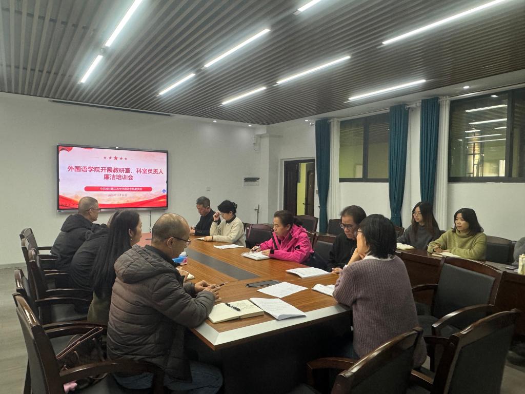 为深入推进全面从严治党,强化重点岗位人员的廉洁自律意识和风险防控能力,11月14日,学院在雁山校区04204会议室组织开展教研室、科室负责人廉政专题培训。培训会由学院党委书记谢济光主持。