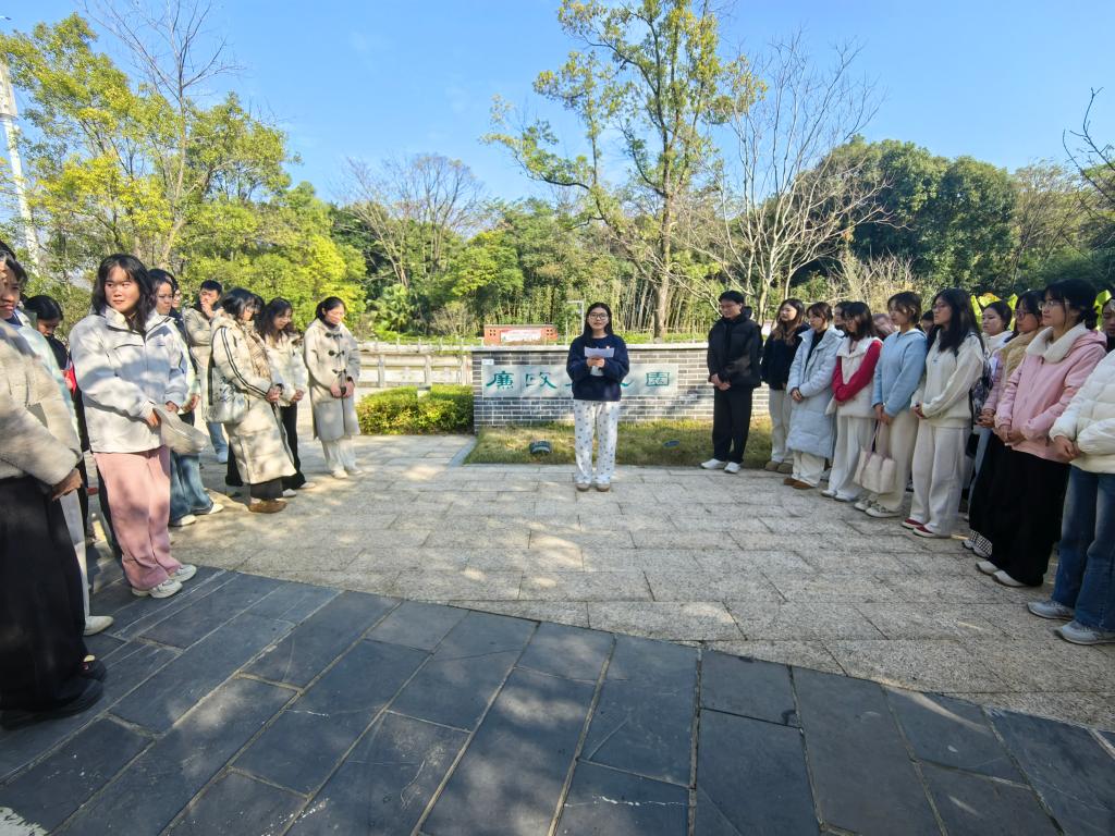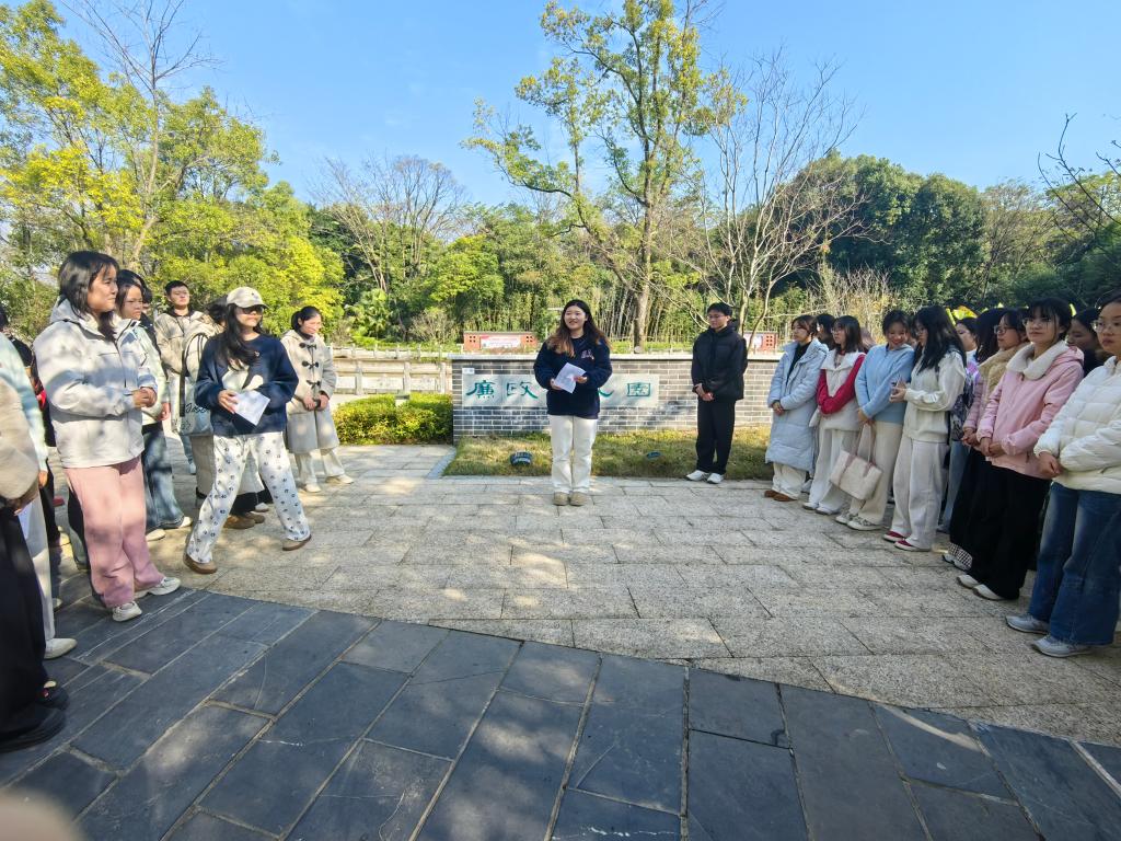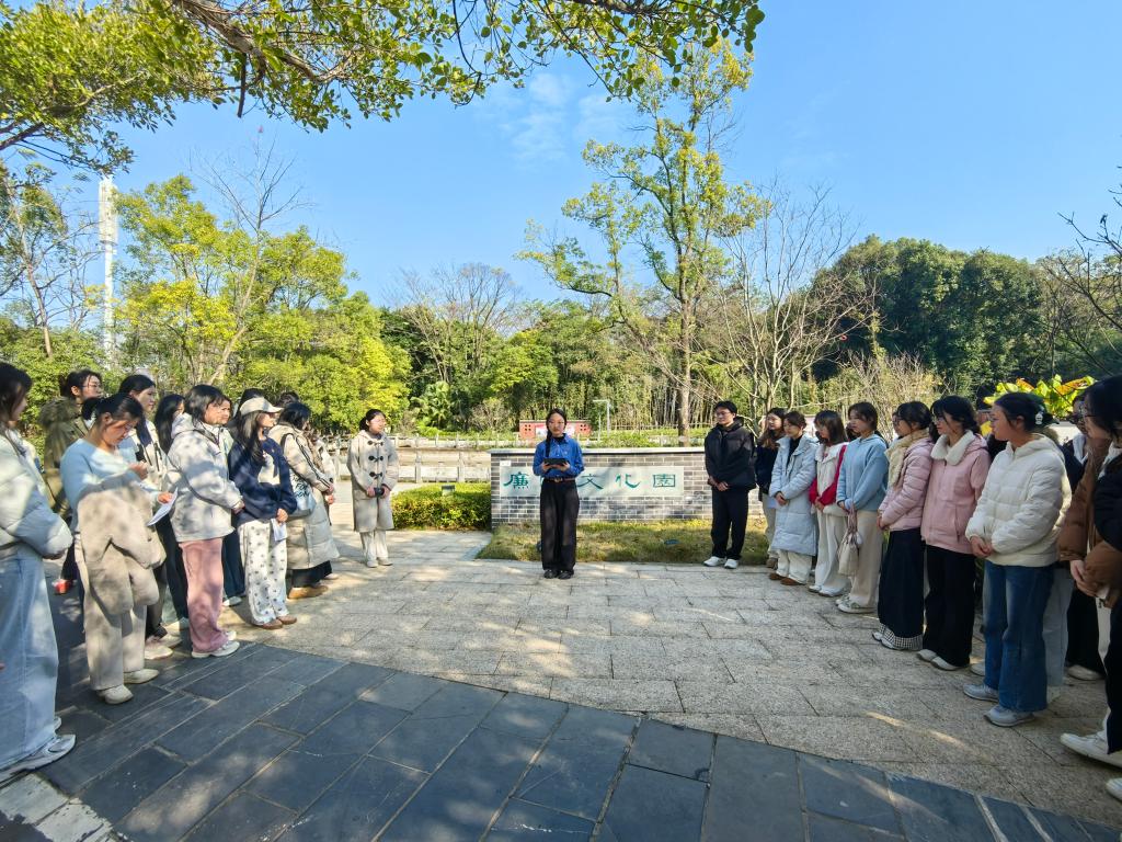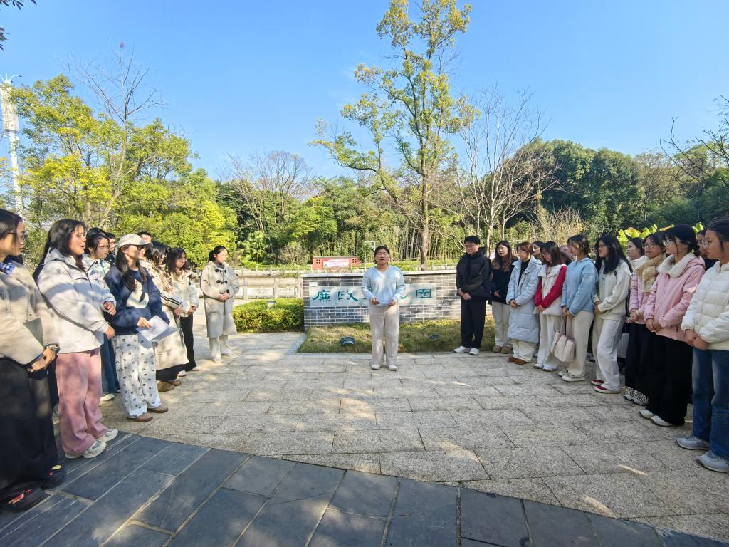 2025年12月26日,外国语学院本科生第一党支部组织34名党员及18名积极分子前往学校廉政文化园,开展“廉洁文化沁人心,纪律严明扬清风”主题党日活动。党员同志们在支部书记邓洁琼同志的带领下参观园区,于移步换景间感受廉洁文化的深厚底蕴与无声熏陶。