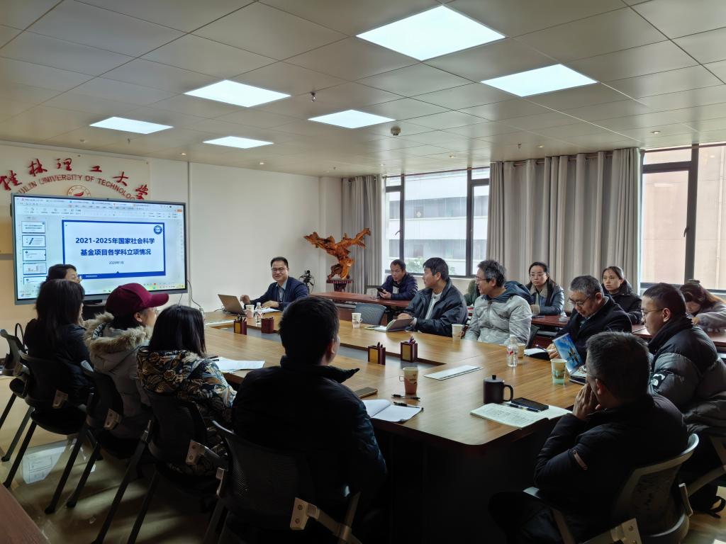 1月26日下午,学院在屏风校区国教楼A205会议室举办“国家社科和教育部项目申报专题辅导讲座暨选题论证会”。学校科技处副处长劳国炜教授担任主讲嘉宾,学院20余名拟申报项目教师参会学习。数学与统计学院副院长封全喜教授及4名教师受邀参会,共同探讨学科交叉融合。活动由学院副院长孟繁旭主持。
