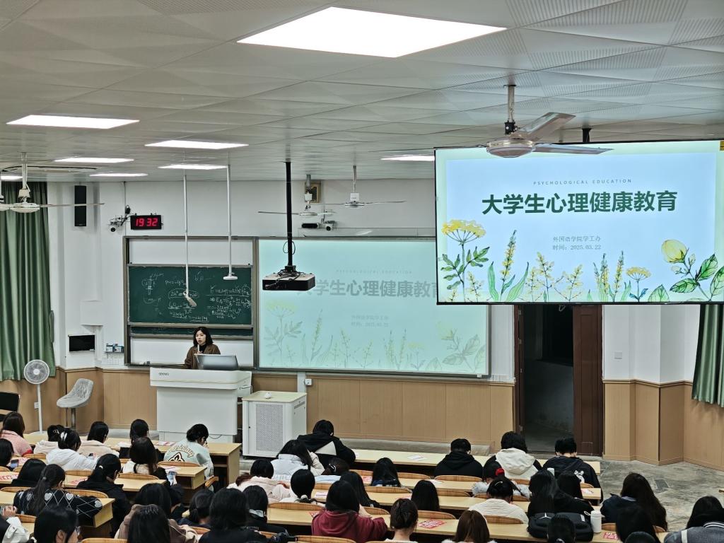 2026年3月22日,外国语学院组织全体在校学生同上一堂心理健康教育课,课程由全院各年级辅导员共同讲授。