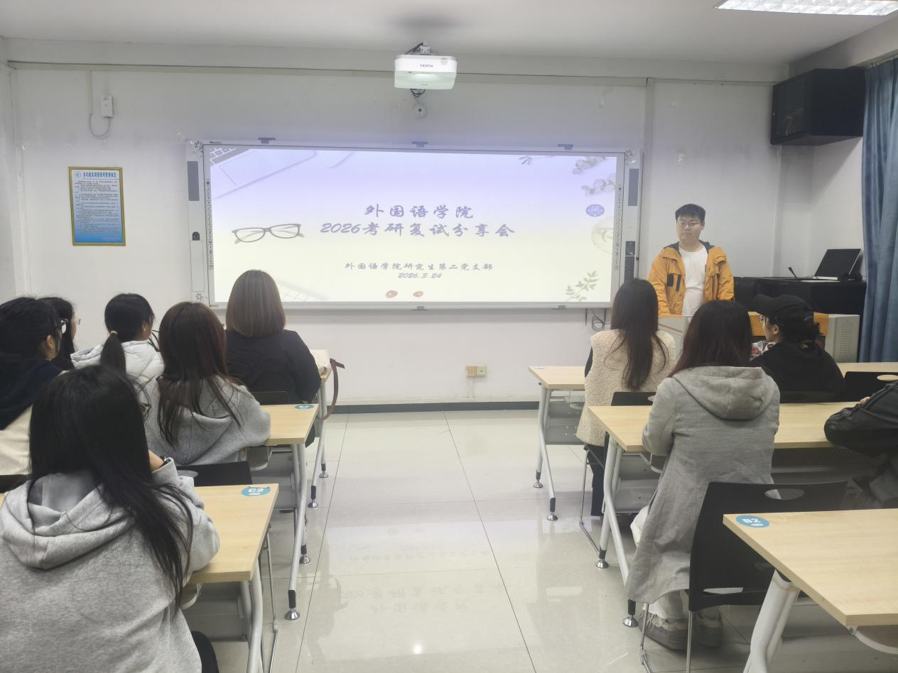 为深入践行全心全意为人民服务的宗旨,切实解决考研学子备考急难愁盼问题,2026年3月24日外国语学院研究生第二党支部精心组织“我为群众办实事”---考研复试经验分享活动,为备战复试的学弟学妹们送上专业、实用的备考指导。