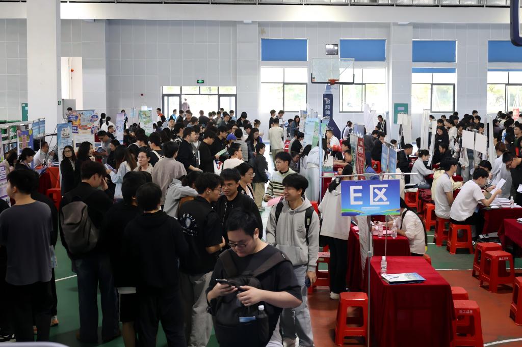 为助力2026届毕业生高质量充分就业,搭建校企精准对接桥梁、拓宽就业渠道,4月23日,外国语学院携手计算机科学与工程学院、机械与控制工程学院、物理与电子信息工程学院、数学与统计学院、旅游与风景园林学院、艺术学院六个学院,在雁山校区新体育馆附楼成功举办2026届毕业生专场招聘会。此次招聘会吸引广西、广东等地区113家优质企业参会,提供就业岗位1200余个,覆盖外语、教育、互联网、智能制造、电子通信、旅游服务、艺术设计等多个行业领域,为毕业生搭建了多元化、高质量的就业选择平台。