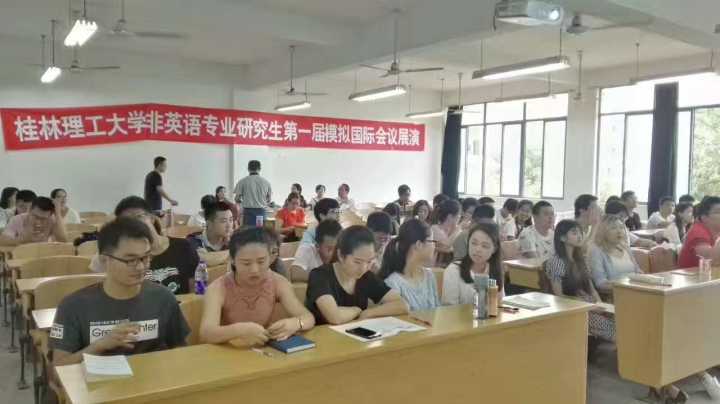 为展示我校非英语专业研究生英语综合应用能力,营造学术英语的氛围,由学校研究生院和外国语学院共同主办的桂林理工大学非英语专业研究生第一届模拟国际会议展演于6月20日分别在屏风校区和雁山校区举行。研究生院相关领导和学校教学督导观看了本次演展。评委团由外院任课教师担任。本次国际会议展演主题涉及一带一路、教育、文化、科技、环保、旅游等多方面内容。展演前,任课教师就内容、台风、发音、礼仪等方面给予具体和详细的指导。学生们结合所学知识和流利的英语交际技能,经过精心准备,以班级为单位展演了国际会议的整个流程。展演过程中,各班发言人以扎实的语言功底、流利的口语和敏捷的思维展示了各自的独特风采,同时也彰显了我校研究生积极向上良好的精神风貌,博得评委和观众们热烈的掌声。