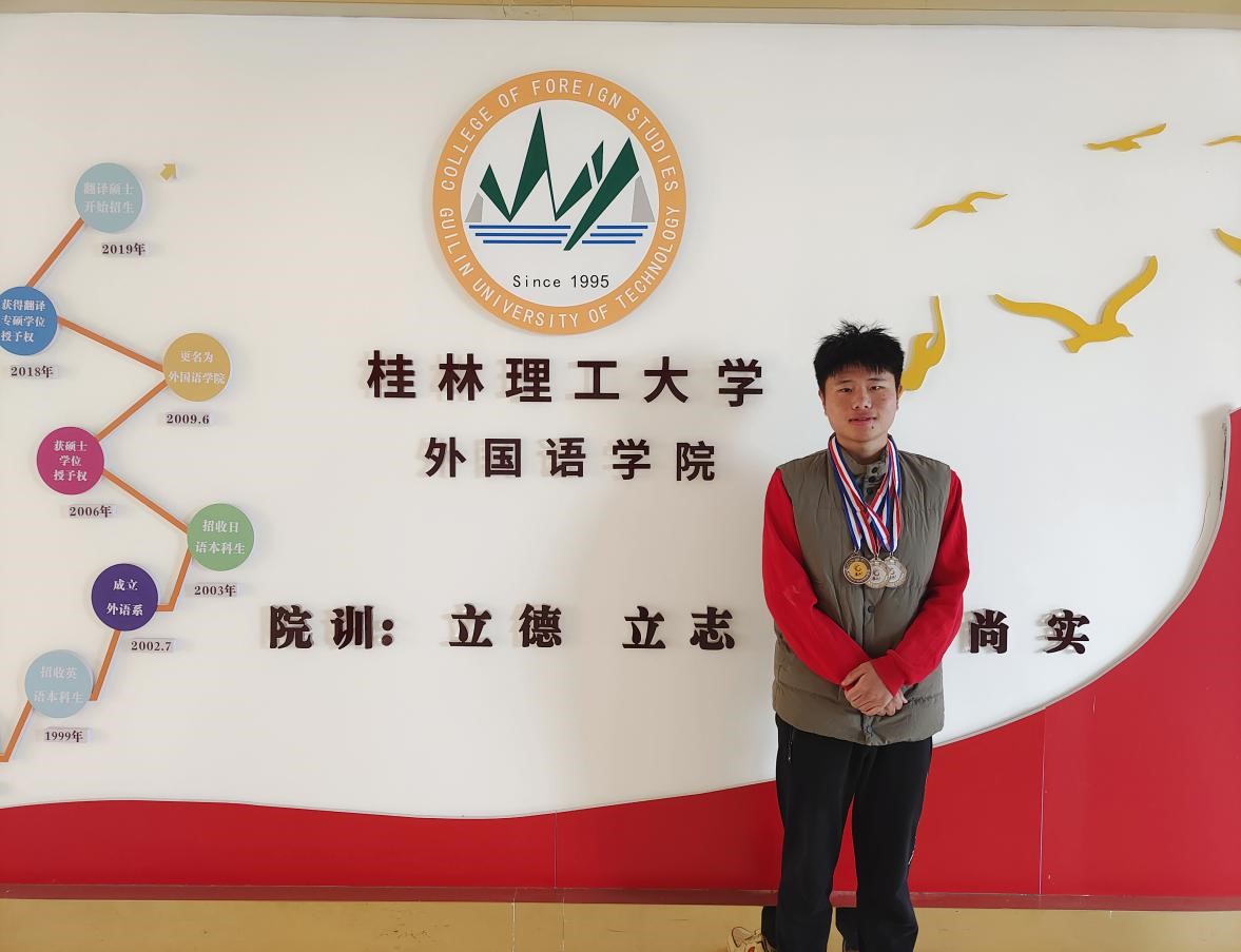 11月6日至7日,2021年全民健身游泳联赛(第三站)在广西体育馆第一游泳馆举行。经过两天的激烈角逐,我院2020级日语1班张崇铄同学克服种种困难,不畏强手,顽强拼搏。获得男子18-30岁组50米自由泳第二名、100米自由泳第二名、50米蛙泳第三名的好成绩。