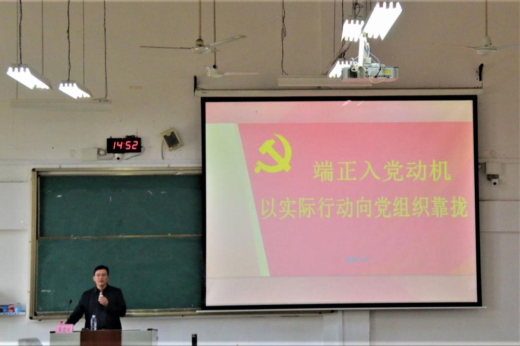 本次党课伊始,外国语学院党委委员、副院长朱建斌老师对于端正入党动机,以实际行动向党组织靠拢进行总体论述。首先,以入党动机为出发点讲述了入党动机的含义以及不正确入党动机的表现,再从社会层面、家庭层面、学校层面逐一分析了造成不正确入党动机的原因。接着,从主动接受党组织的培养教育、加强党性修养、正确处理入党过程的矛盾这三个方面详细总结了端正入党动机的方法。最后,朱建斌老师向同学们讲解了党员标准,提出了要如何正确认识和看待党员标准,并就所归纳的以实际行动早日成为党员的做法进行详细地阐述,还以学习党的理论知识为例分享了的相关网站。另外朱建斌老师对广大积极分子给予厚望,希望大家不忘初心,端正入党动机,以实际行动向党组织靠拢。
