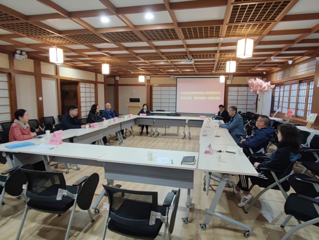 11月16日下午,桂林电子科技大学外国语学院杨丹江书记、黄宇元院长一行六人来我院调研交流。我院领导班子成员、大学外语教学部主任在日本文化体验中心热情接待了来访客人。