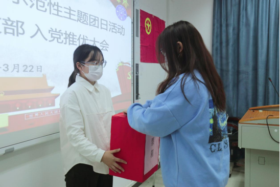 所有推优候选人发言后,支部全体团员进行不记名投票表决。工作人员完成现场唱票、统票后上台宣布各个推优对象得票情况,根据得票规则确定了团支部本次成功推优团员名单。