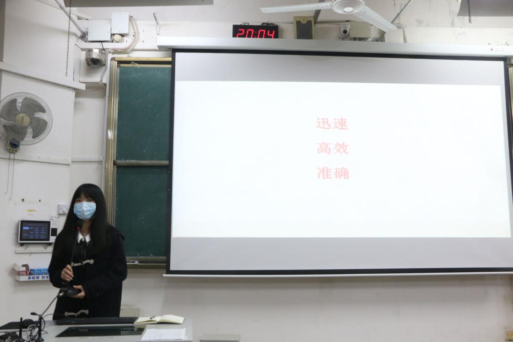 最后,2018级辅导员梁璇老师进行了主题分享,透过“安全”、“奉献”、“责任”的关健词从个人学习、工作经历角度表达了对生命意义的感想,以此向同学们传达“在其位,尽其职”的期盼,引导同学们在学习、工作和生活中长反思、善总结、重交流。