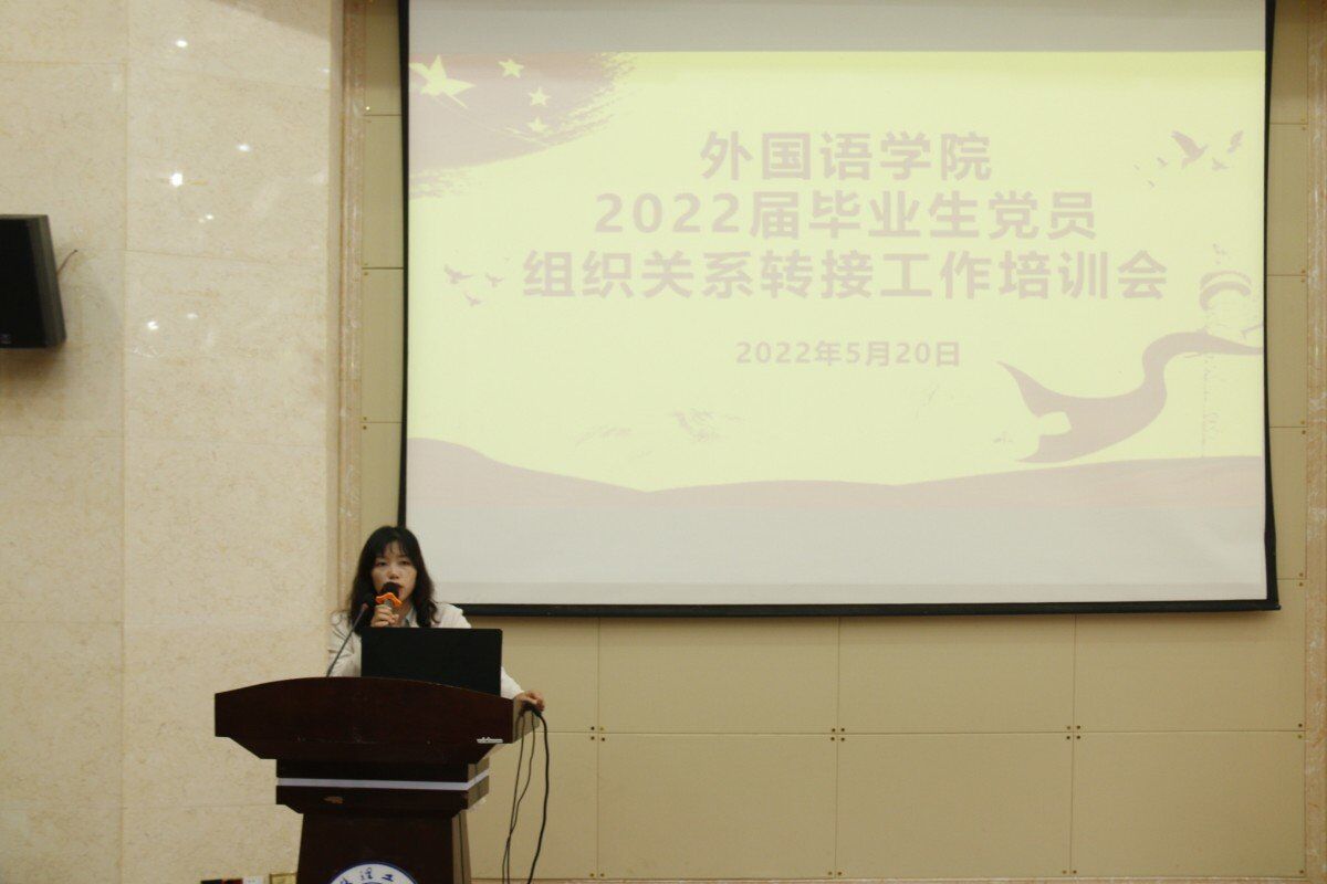 为推动我院毕业生党员毕业后党组织关系转接工作的顺利进行,我院于2022年5月20日中午12点40,在雁山校区萃华楼报告厅召开2022届毕业生党员党组织关系转接工作培训会。本次会议由外国语学院专职组织员、纪委委员陈欣老师主讲,我院全体毕业生党员参加。