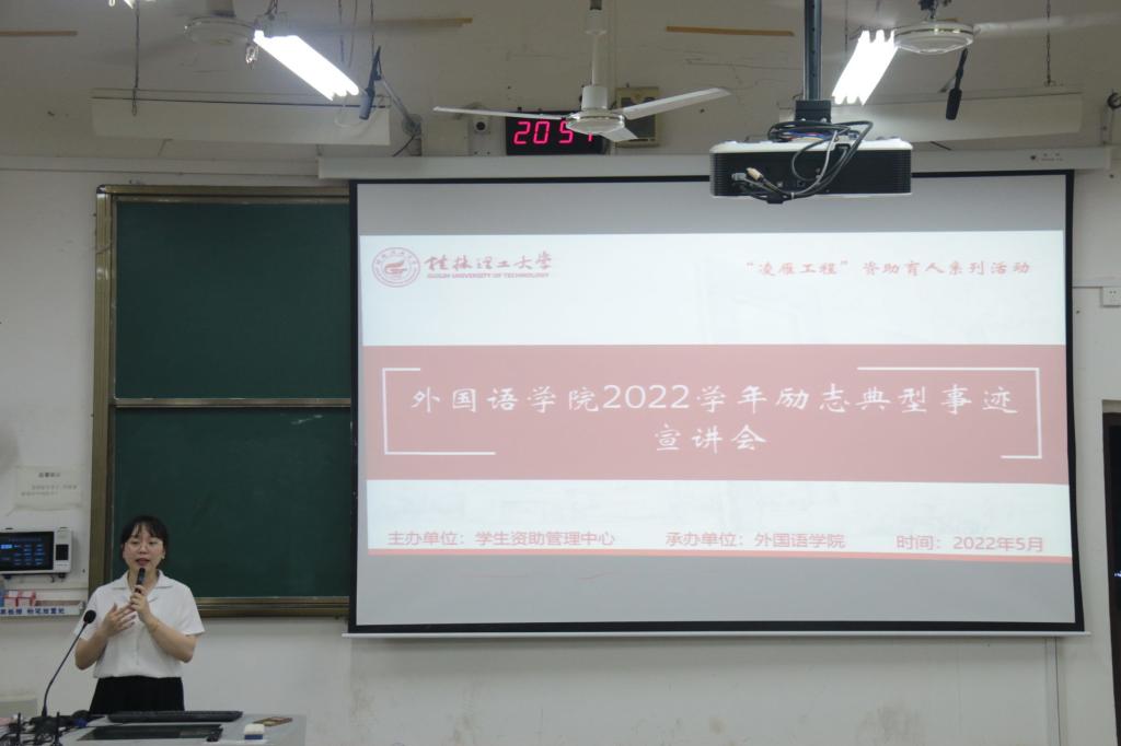 为进一步发挥优秀学生的典型作用,引导和激励我院学生勤奋学习、向榜样看齐,5月15日晚,我院在04525、07109教室顺召开了励志学生典型事迹宣讲会。此次宣讲会由学院励志之星获得者英语20-3班胡尧柳、英语20-1班李琳、日语20-2班黄槿蝶同学主讲,我院学生积极到场参加。宣讲会由各年级辅导员主持。