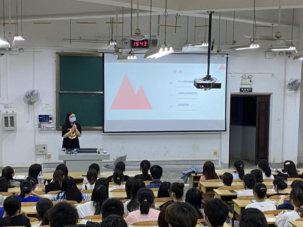 会议开始,各年级辅导员向大家介绍了本次宣讲会的主讲人。接着,主讲人胡尧柳、李琳、黄槿蝶分别上台进行事迹分享。胡尧柳讲述了自己的成长故事及在大学两年中如何从一个腼腆的同学成长为可以独当一面,担任各类学生干部的励志故事。李琳同学分享了自己的学习方法及如何提高学习效率的心得,如何在学习、工作、志愿服务等板块向目标靠近的做法。黄槿蝶同学则讲述了目标对于一个人成长与进步的重要性,强调大学生要确定自己的学习与生活目标,并为之不懈奋斗。台下同学们认真听讲,现场氛围良好。随后,主讲人与同学们进行了现场互动,耐心地回答了他们提出的问题。最后,各年级辅导员号召同学们积极向优秀榜样学习,学习他们勤奋刻苦、勇于拼搏的精神。