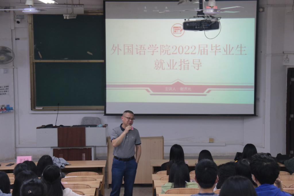为全面推进我院毕业生就业工作,进一步帮助毕业生了解就业形势和就业政策,引导毕业生树立正确的就业观,2022年5月22日,我院在桂林理工大学雁山校区07319教室召开外国语学院2022届毕业生就业指导会议。本次讲座特别邀请了学院党委书记谢济光、学院院长唐渠到场授课。2022届全体毕业生到场听讲,本次讲座由学院团委副书记(兼)、2022届毕业班辅导员梁璇主持。