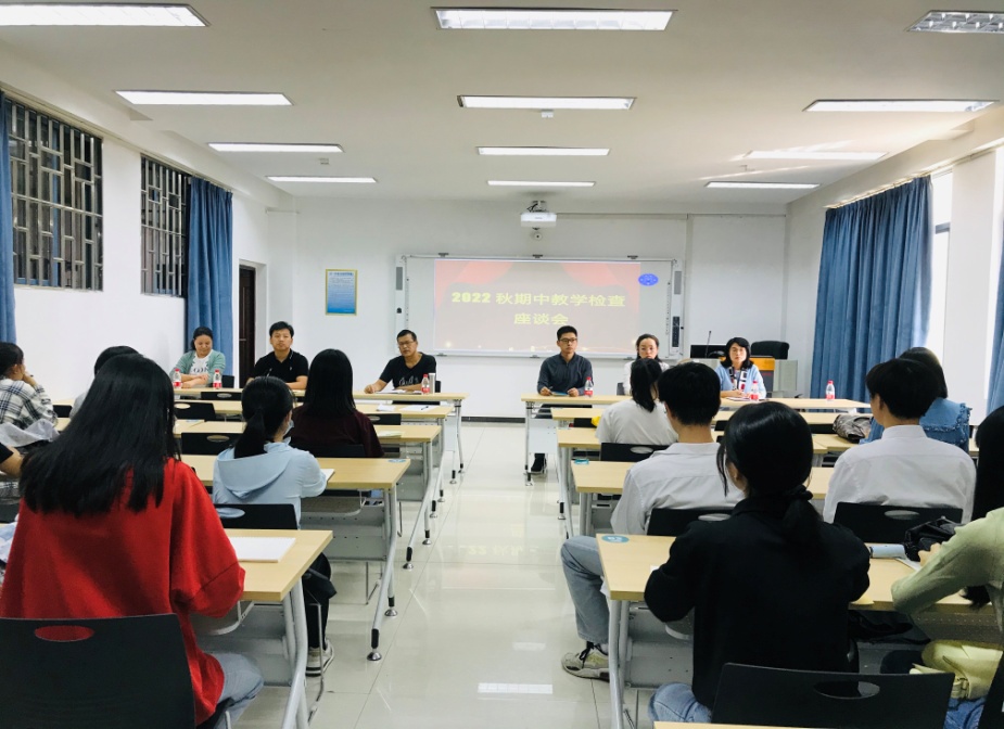 11月8日14:30,我院在04305召开2022秋期中教学检查学生座谈会。学院主管教学副院长、院级督导、院长助理、各教研室正副主任、辅导员代表及学生代表40余人参会,会议由胡金副院长主持。