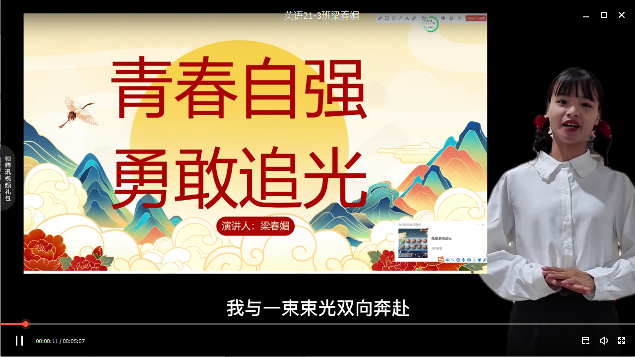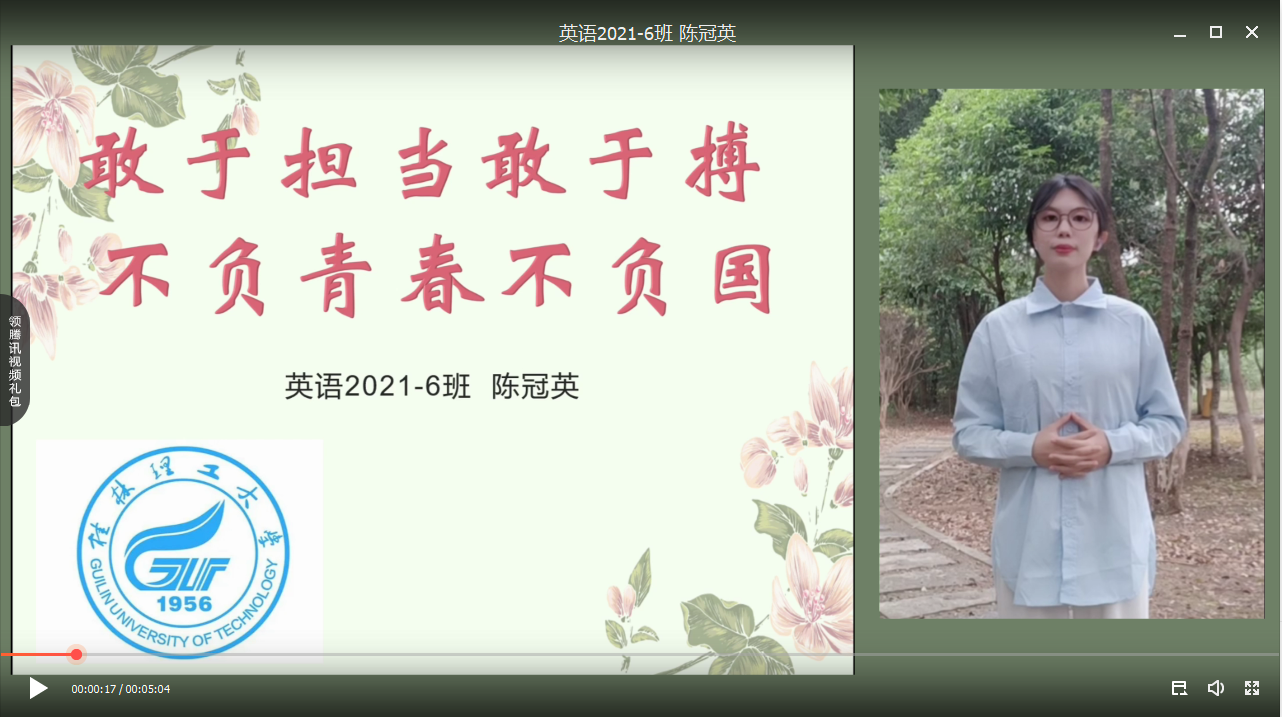 选手们围绕“青春自强,勇毅前行”主题,在视频中分享了自己自立自强,敢于挑战自我的事迹,充分展示了自我风采面与自强不息的精神,书写了当代大学生克服困难的精彩篇章。最后,宣布唐琴等10位同学获评外国语学院2020-2021学年“自强之星”荣誉称号,本次线上答辩会圆满结束。