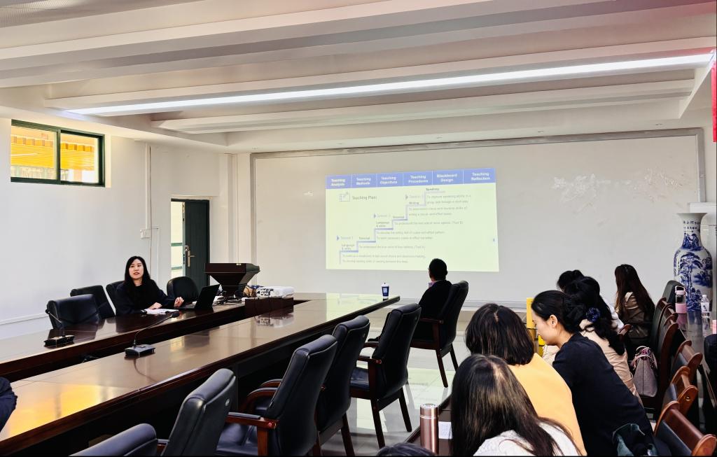 为提升大学英语教学质量、促进教师教学能力提升,2025年11月14日下午,基础英语教研室与应用英语教研室联合举办大学英语说课观摩活动,基础英语教研室滕丽媛老师主讲,两教研室全体教师参与此次教研交流。