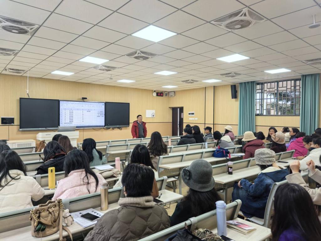 会议伊始,韦运会副院长对教研室教师本学期的工作成效给予充分肯定。他指出,全体教师凝心聚力、履职尽责,在教学科研、学生培养等方面取得了良好成绩。针对后续工作,韦运会副院长提出明确要求:一是要扎实做好学期收尾各项工作,尤其要严格遵守期末监考规范,保证考试公正公平;二是要持续提升教学质量,在巩固四级通过率提升成果的基础上,进一步拔高要求,全力推动六级通过率稳步提升;三是希望全体教师不断加强自我提升,始终保持持续学习的热情,更好地适应新时代外语教育发展需求。