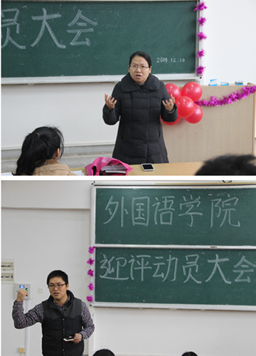 在迎评动员大会上,王威老师对迎评前期准备及进行评估时的工作做出了具体安排;江玲老师对教学质量评估进行了深入解读,分析利弊,并对全体团委学生会成员和党员提出更高的要求;赵思聪老师则对在宿舍进行巡查时发现的问题进行分析,提出整改要求。