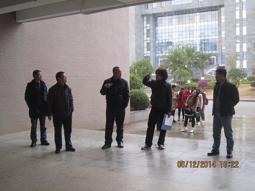 为进一步提升我院文化氛围,以我校本科生教学审核评估为契机,2014年12月6日下午,我院傅广生院长、莫运夏副院长、谢济光副院长、唐渠助理、本科生代表、研究生代表以及相关广告公司专业人员一同来到雁山校区外国语学院教学楼,进行楼道和楼层的宣传栏、海报板块的布局设计与构思。