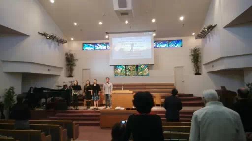 这是洛杉矶帕沙迪纳附近另一个教会的周日团契活动,这里的教徒年轻人比例较大,所以唱圣歌的演奏乐器是吉他、贝斯、小提琴、架子鼓。歌曲节奏糅合流行音乐。